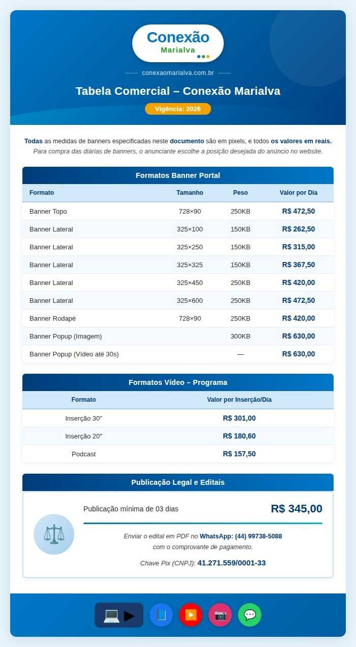 ANUNCIE CONOSCO - TABELA DE PREÇOS